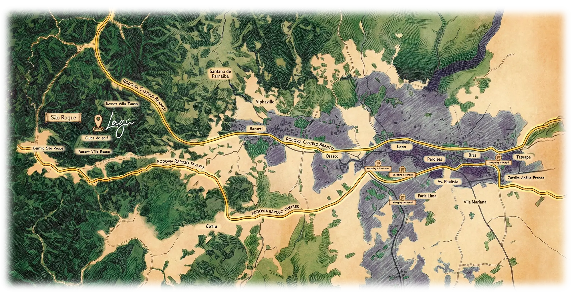 O Lagú está localizado em um dos bairros mais nobres de São Roque, vizinho ao Campo de Golfe Vila da Mata e próximo aos melhores resorts da cidade, como o Villa Tanah e o Villa Rossa. A região ainda oferece a exclusividade do Catarina Shopping e o charme de dezenas de vinícolas surpreendentes.