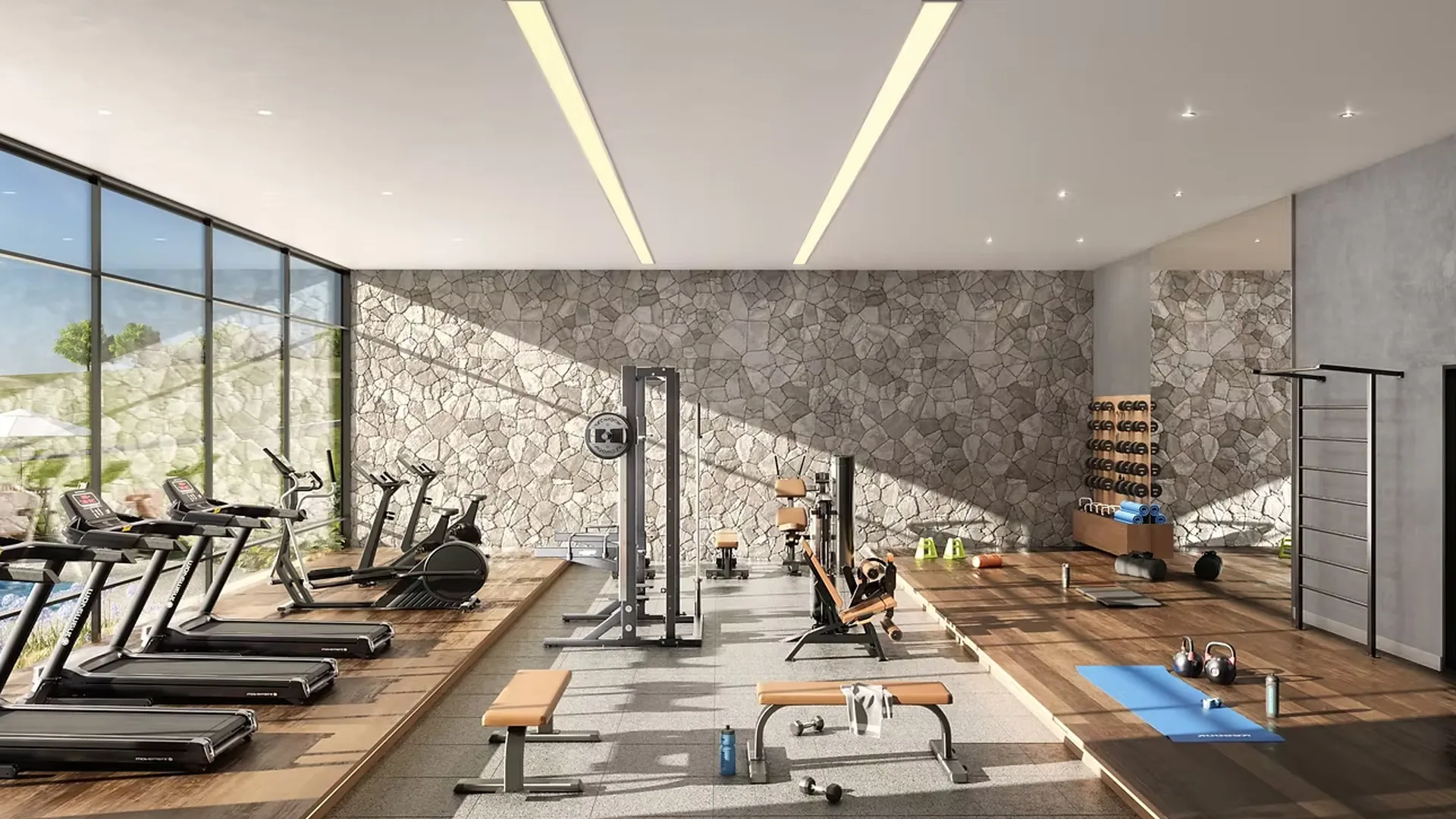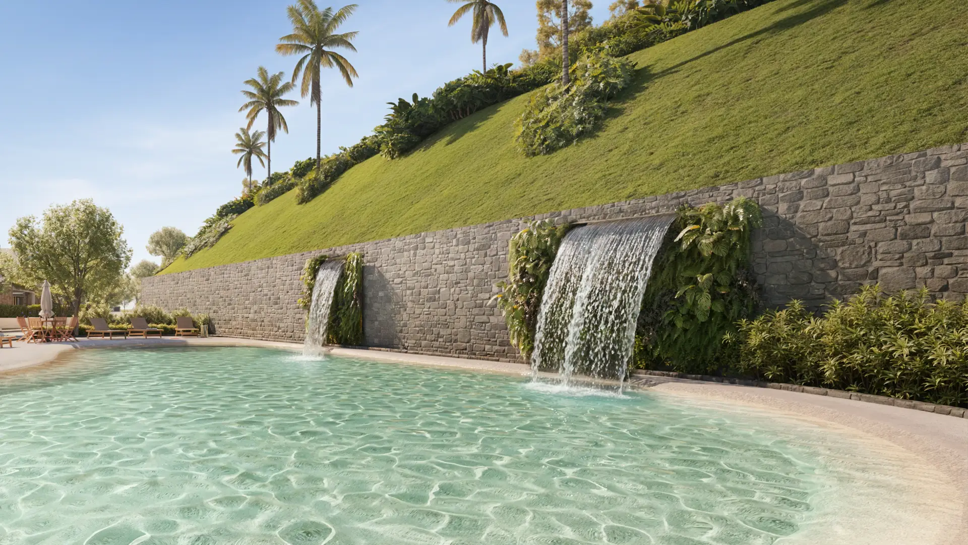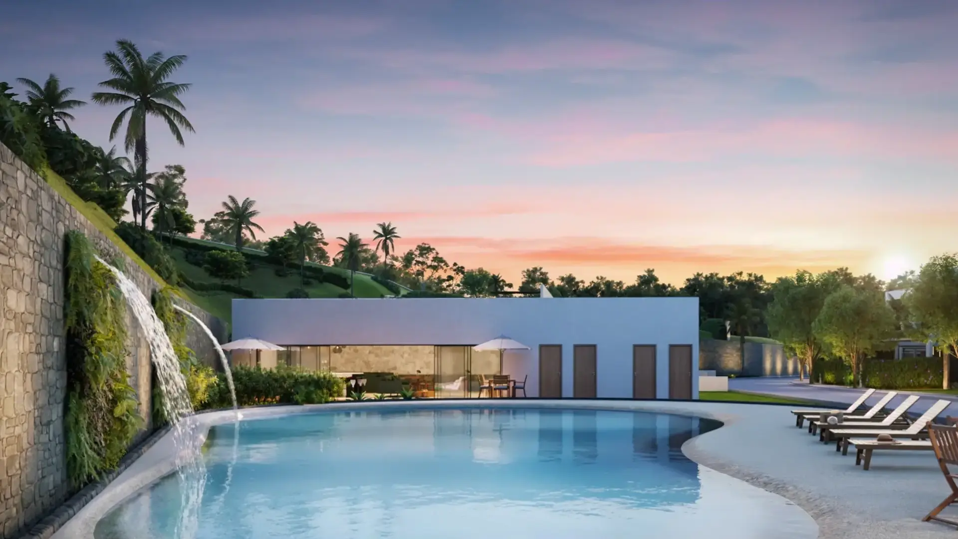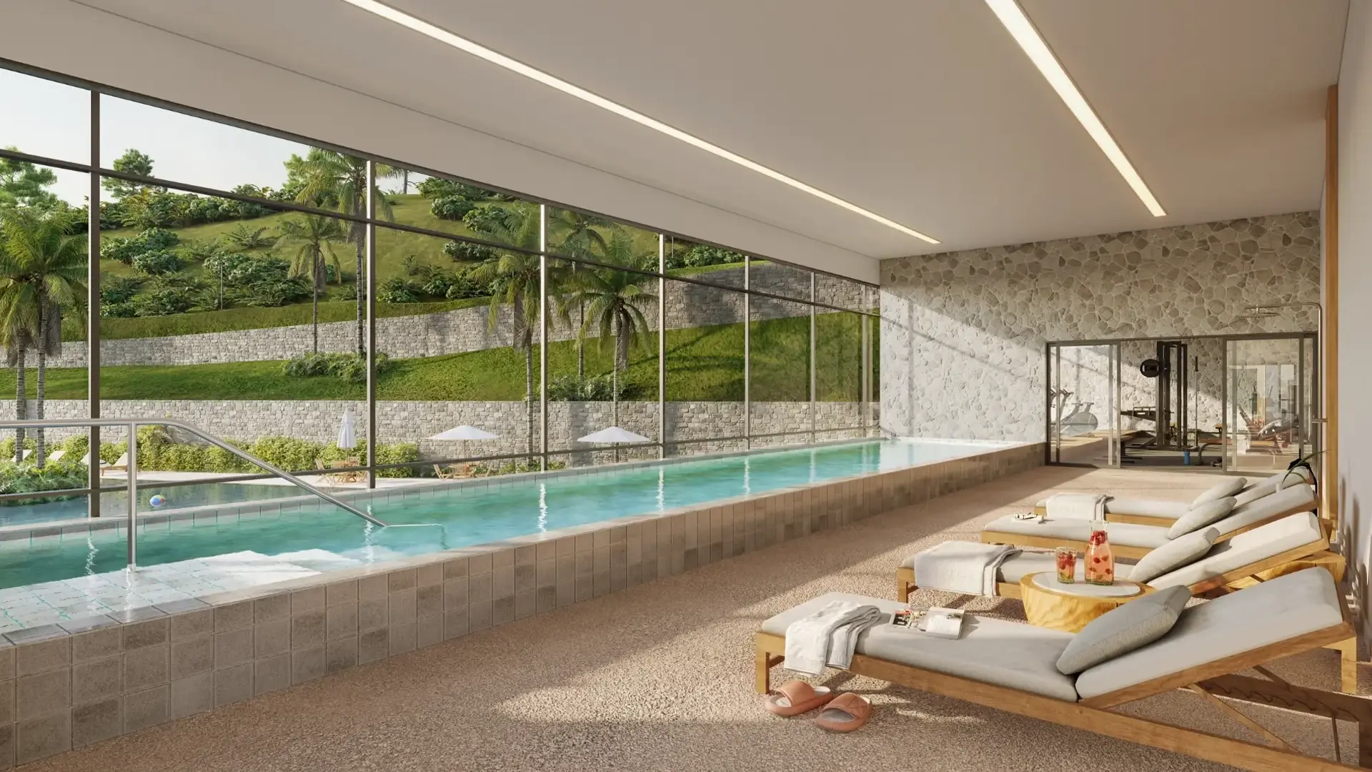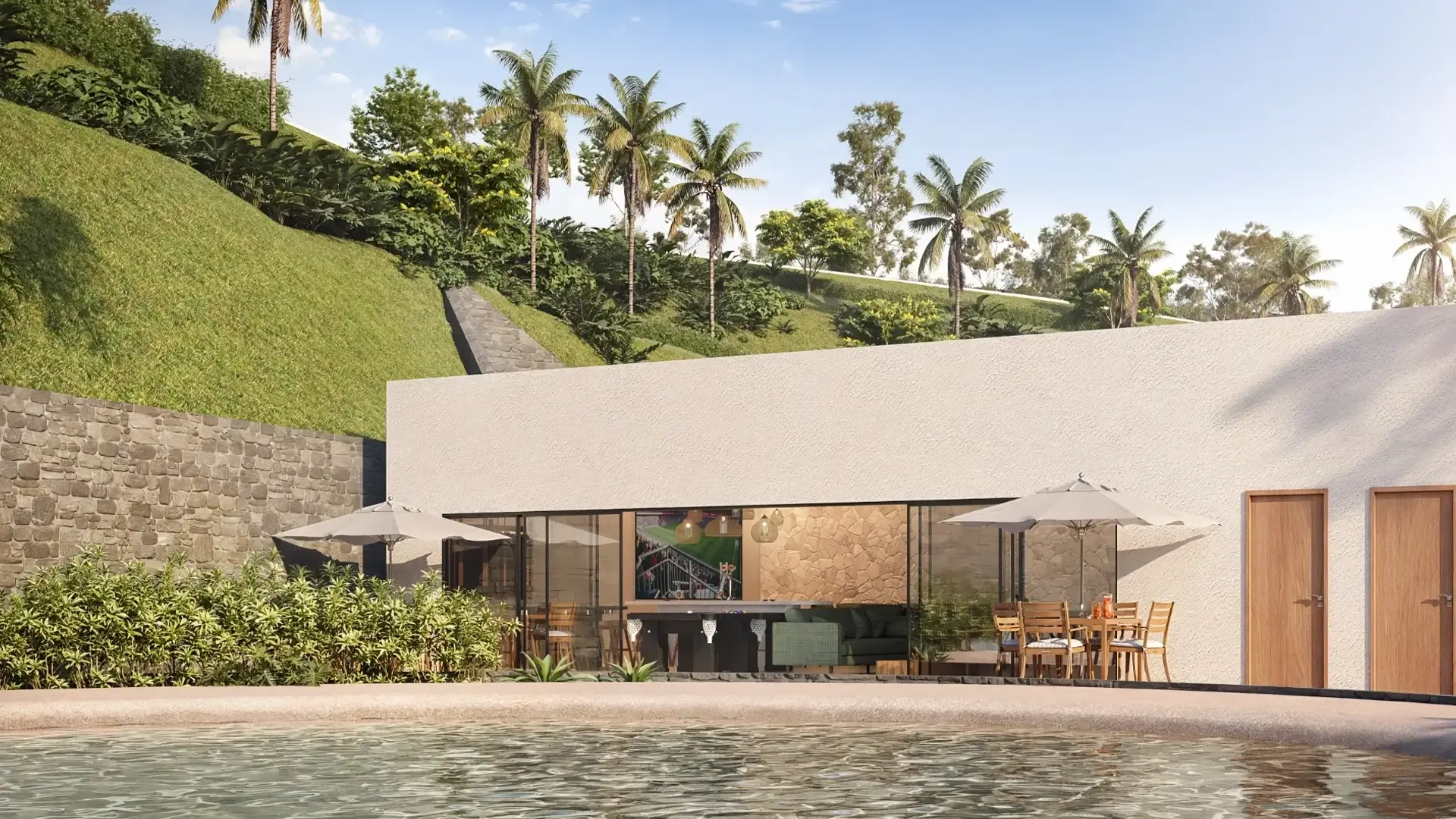 Perspectiva ilustrada da vista da piscina privativa**